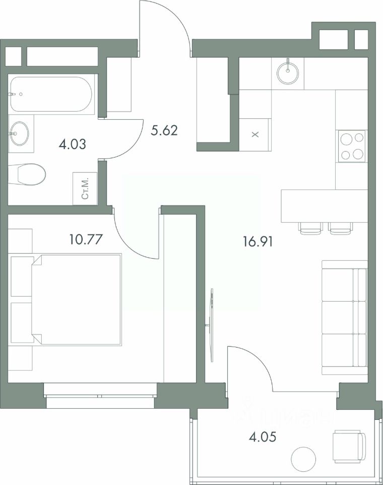 Жилая площадь10,8 м²