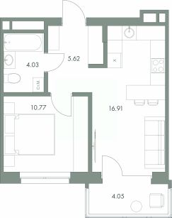 Продается 1-комн. квартира, 41,38 м²