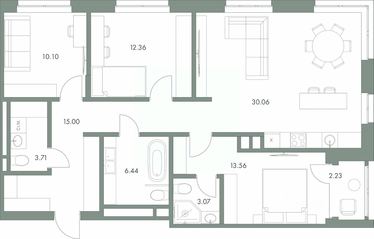 Гранд-квартал "Гринкод" - новый масштабный проект опытного застройщика "Азбука development". В нем собраны наши лучшие практики и современные, стильные решения, чтобы создать среду для счастливой семейной жизни. Квартал расположен в 44 микрорайоне Сургута, в границах улиц Билецкого, Шидловского, Крылова и Бокова, рядом с лесным массивом. Благодаря насыщенной инфраструктуре и 8 га леса рядом, в гранд-квартале активная жизнь находится в балансе с возможностью поймать мгновение. Одно из уникальных решений, направленных на восстановление сил и энергии жителей - эко-тропа внутри лесного участка, где все деревья сохранили свою первозданную силу и красоту. Свежий воздух, пение птиц, красота северной природы - это мощные источники для восполнения сил. В пешей доступности есть действующие детские сады, школы, частные клиники, пункты выдачи, крупный ТРЦ, развивающие и спортивные секции. В стадии реализации спортивный комплекс - ледовый дворец. Помимо имеющейся инфраструктуры в каждом доме на первом этаже будут расположены коммерческие помещения в аренду и уже сейчас ведется работа по подбору арендаторов с деятельностью, которая будет полезна будущим жителям. Все дома в проекте монолитно-кирпичные с подземным паркингом и кладовыми. Девять этажей, до шести квартир на площадке позволит создать более комфортную и приватную среду для проживания, а современная и стильная архитектура украсит микрорайон и станет точкой притяжения настоящих эстетов. У каждого дома свой закрытый двор с круглосуточной охраной и видеонаблюдением. Ландшафтное озеленение, прогулочные аллеи, территории спорта и летний кинотеатр, площадки для игр и развития самых маленьких жителей квартала. Ассортимент планировочных решений позволяет выбрать необходимый сценарий жизни под любой запрос: квартиры с террасой, мастер-спальней, постирочной и гардеробом, а панорамные окна и высокие потолки сделают сценарий особенным.