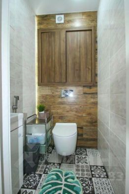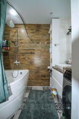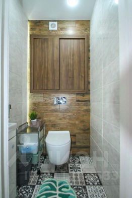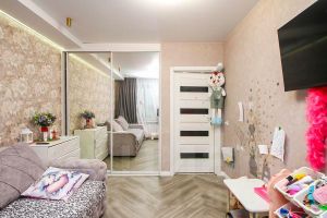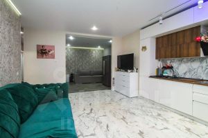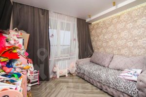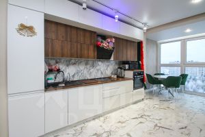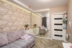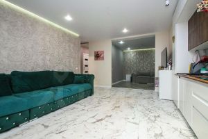 В квартире выполнен современный ремонт: стены выровнены и оклеены обоями, напольное покрытие - ламинат и керамогранит.