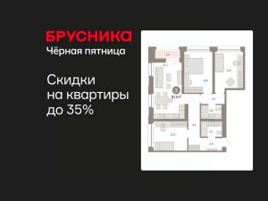 Квартира с кухней-гостиной и тремя спальнями в квартале "Нефть". Особенности планировки: второй санузел, лоджия, разнесённые спальни, предчистовая отделка.