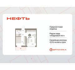 1-комн. квартира с предчистовой отделкой в ЖК "Нефть" на 6 этаже. Общая площадь: 36.5 кв.м., жилая: 9.4 кв.м., площадь просторной кухни-гостиной: 16.3 кв.м. Все окна выходят на одну сторону. В квартире один балкон, один совмещенный санузел. Высота потолков 2.7 м.