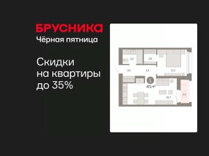 Квартира с кухней-гостиной и одной спальней в квартале "Нефть". Особенности планировки: гардеробная, лоджия, предчистовая отделка.