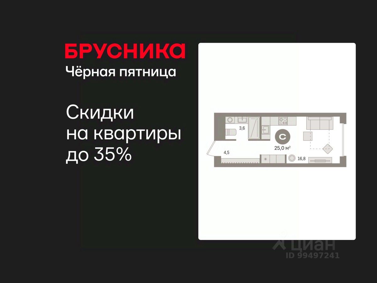 Продается 1-комн. студия от застройщика с предчистовой отделкой в ЖК "Новин" на 4 этаже. Общая площадь: 24.95 кв.м., площадь гостиной 16.8 кв.м., из которых 5 кв.м. выделено под кухонную зону. Все окна выходят на одну сторону. В квартире один совмещенный санузел. Высота потолков 2.7 м.