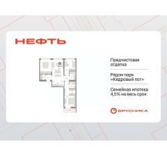 Квартира с кухней-гостиной и двумя спальнями в квартале "Нефть". Особенности планировки: гардеробная, вид во двор, разнесённые спальни, предчистовая отделка, мастер-спальня, постирочная, балкон.