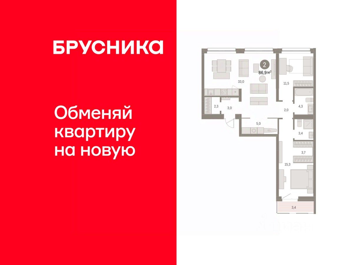 Двухкомнатная квартира с предчистовой отделкой в ЖК "Нефть" на 9 этаже. Общая площадь: 86.9 кв.м., жилая: 26.8 кв.м., площадь просторной кухни-гостиной: 33 кв.м. Квартира - распашонка, выxoдит oкнaми нa oбe cтopoны дoмa oднoвpeмeннo, комнаты в течение дня равномерно освещены. В квартире один балкон, два совмещенных санузла. Высота потолков 2.7 м.