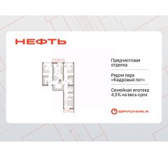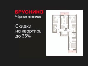Квартира с кухней-гостиной и тремя спальнями в квартале "Нефть". Особенности планировки: гардеробная, вид во двор, разнесённые спальни, предчистовая отделка, мастер-спальня, постирочная, балкон.