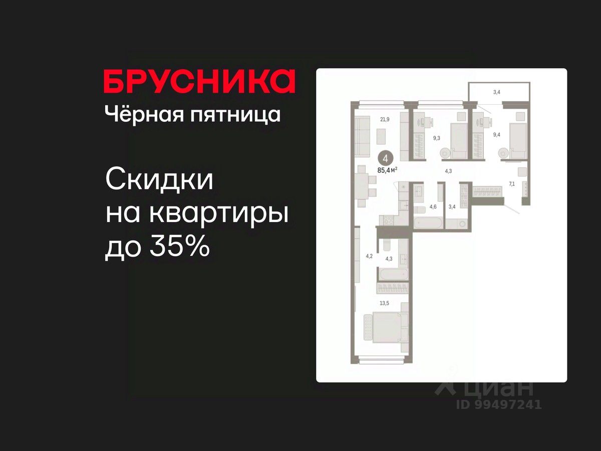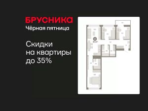 Квартира с кухней-гостиной и тремя спальнями в квартале "Нефть". Особенности планировки: вид во двор, разнесённые спальни, предчистовая отделка, мастер-спальня, постирочная, балкон.
