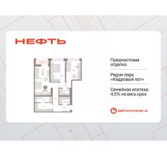 Квартира с кухней-гостиной и двумя спальнями в квартале "Нефть". Особенности планировки: второй санузел, гардеробная, лоджия, предчистовая отделка, постирочная.