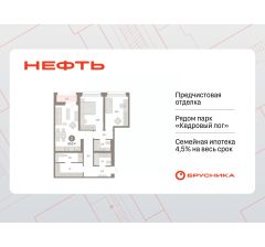 Квартира с кухней-гостиной и двумя спальнями в квартале "Нефть". Особенности планировки: второй санузел, гардеробная, лоджия, постирочная, предчистовая отделка.