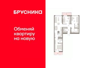 Квартира с кухней-гостиной и тремя спальнями в квартале "Нефть". Особенности планировки: балкон, предчистовая отделка, разнесённые спальни.
