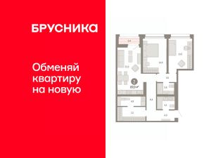 Квартира с кухней-гостиной и двумя спальнями в квартале "Нефть". Особенности планировки: второй санузел, гардеробная, лоджия, постирочная, предчистовая отделка.