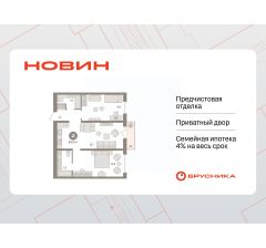Квартира с кухней-гостиной и двумя спальнями в квартале "Новин". Особенности планировки: балкон, гардеробная, мастер-спальня, предчистовая отделка, разнесённые спальни.