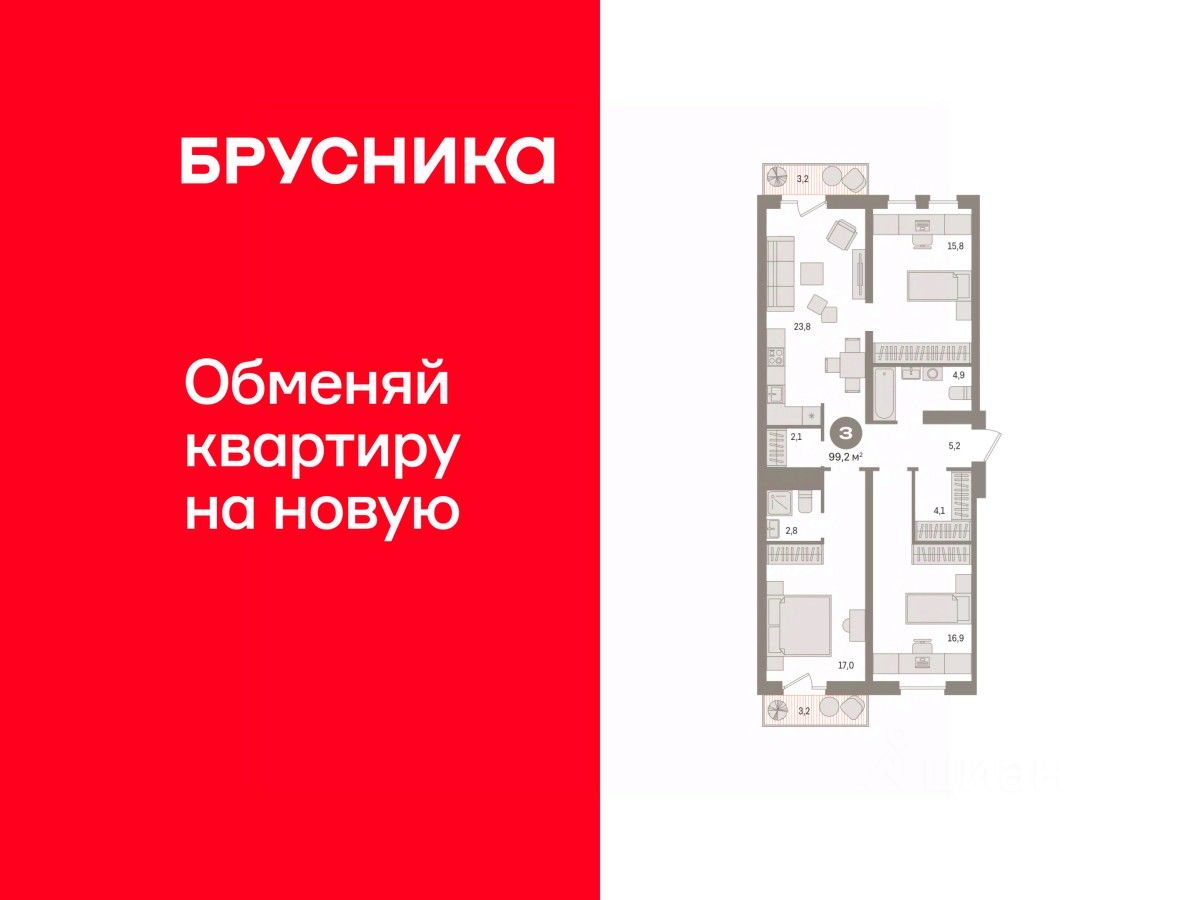 Трехкомнатная квартира с предчистовой отделкой в ЖК "Новин" на 3 этаже. Общая площадь: 99.2 кв.м. Высота потолков 2.7 м.