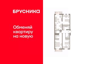 Квартира с кухней-гостиной и тремя спальнями в квартале "Новин". Особенности планировки: балкон, вид во двор, гардеробная, мастер-спальня, окна на две стороны, предчистовая отделка, разнесённые спальни.