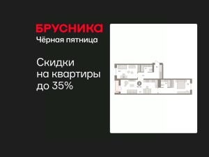 Квартира с кухней-гостиной и двумя спальнями в квартале "Новин". Особенности планировки: окна на две стороны, вид во двор, лоджия, разнесённые спальни, предчистовая отделка, мастер-спальня.
