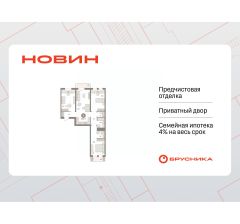 Квартира с кухней-гостиной и тремя спальнями в квартале "Новин". Особенности планировки: окна на две стороны, вид во двор, разнесённые спальни, предчистовая отделка, мастер-спальня, постирочная, балкон.
