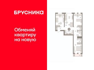 Квартира с кухней-гостиной и тремя спальнями в квартале "Новин". Особенности планировки: балкон, окна на две стороны, предчистовая отделка, разнесённые спальни.