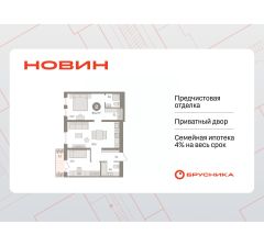 2-комн. квартира от застройщика с предчистовой отделкой в ЖК "Новин" на 6 этаже. Общая площадь: 64.15 кв.м., жилая: 25.4 кв.м., площадь просторной кухни-гостиной: 20.5 кв.м. Комнаты изолированные, все окна выходят на одну сторону. В квартире один балкон, два совмещенных санузла. Высота потолков 2.7 м.