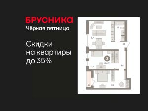 Просторная 2-комн. квартира с предчистовой отделкой в ЖК "Новин" на 10 этаже. Общая площадь: 73.06 кв.м., жилая: 33.7 кв.м., площадь просторной кухни-гостиной: 21.7 кв.м. Комнаты изолированные, все окна выходят на одну сторону. В квартире одна лоджия, один совмещенный санузел. Высота потолков 2.7 м.