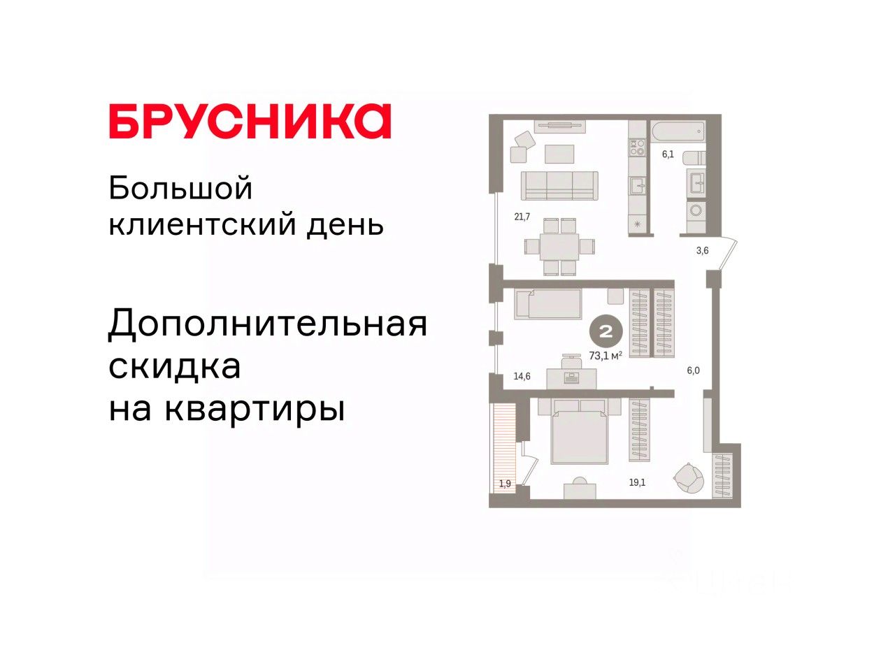 Просторная двухкомнатная квартира с предчистовой отделкой в ЖК "Новин" на 10 этаже. Общая площадь: 73.06 кв.м., жилая: 33.7 кв.м., площадь просторной кухни-гостиной: 21.7 кв.м. Комнаты изолированные, все окна выходят на одну сторону. В квартире одна лоджия, один совмещенный санузел. Высота потолков 2.7 м.