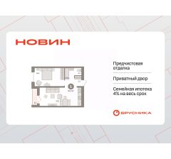 Квартира с кухней-гостиной и одной спальней в квартале "Новин". Особенности планировки: лоджия, предчистовая отделка.