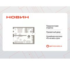 Квартира с кухней-гостиной и одной спальней в квартале "Новин". Особенности планировки: предчистовая отделка, тёплая лоджия.