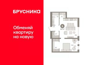 Просторная однокомнатная квартира с предчистовой отделкой в ЖК "Новин" на 4 этаже. Общая площадь: 54.73 кв.м., жилая: 14.4 кв.м., площадь просторной кухни-гостиной: 22.4 кв.м. Все окна выходят на одну сторону. В квартире один совмещенный санузел. Высота потолков 2.7 м.