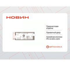 Студия в квартале "Новин". Особенности планировки: предчистовая отделка, балкон.