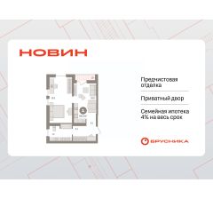 Квартира с кухней-гостиной и одной спальней в квартале "Новин". Особенности планировки: вид во двор, гардеробная, лоджия, мастер-спальня, окно в санузле, предчистовая отделка.