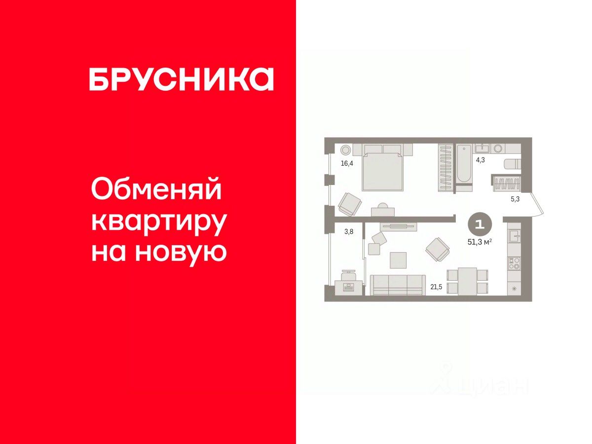 1-комн. квартира от застройщика с предчистовой отделкой в ЖК "Новин" на 13 этаже. Общая площадь: 51.29 кв.м., жилая: 16.4 кв.м., площадь просторной кухни-гостиной: 21.5 кв.м. Все окна выходят на одну сторону. В квартире одна лоджия, один совмещенный санузел. Высота потолков 2.7 м.