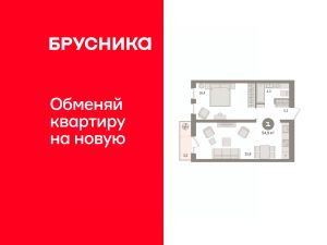 Квартира с кухней-гостиной и одной спальней в квартале "Новин". Особенности планировки: предчистовая отделка.
