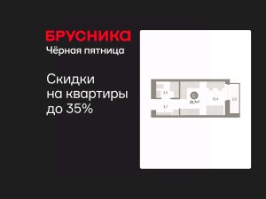 1-комн. студия с предчистовой отделкой в ЖК "Нефть" на 7 этаже. Общая площадь: 22.7 кв.м., площадь гостиной 13.4 кв.м., из которых 5 кв.м. выделено под кухонную зону. Все окна выходят на одну сторону. В квартире один балкон, один совмещенный санузел. Высота потолков 2.7 м.