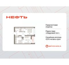Квартира с кухней-гостиной и одной спальней в квартале "Нефть". Особенности планировки: гардеробная, лоджия, предчистовая отделка.