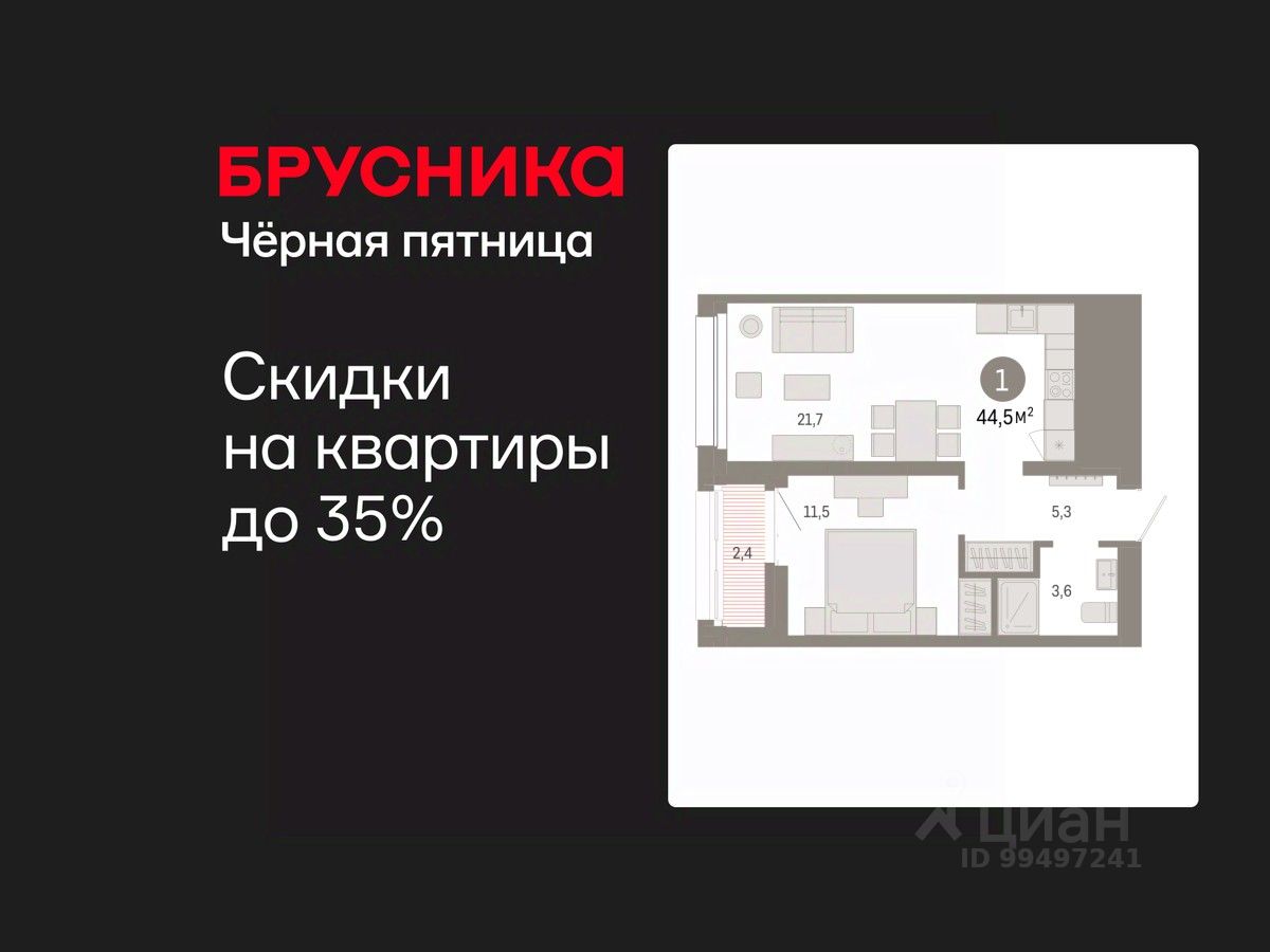 Квартира с кухней-гостиной и одной спальней в квартале "Нефть". Особенности планировки: вид во двор, лоджия, предчистовая отделка.