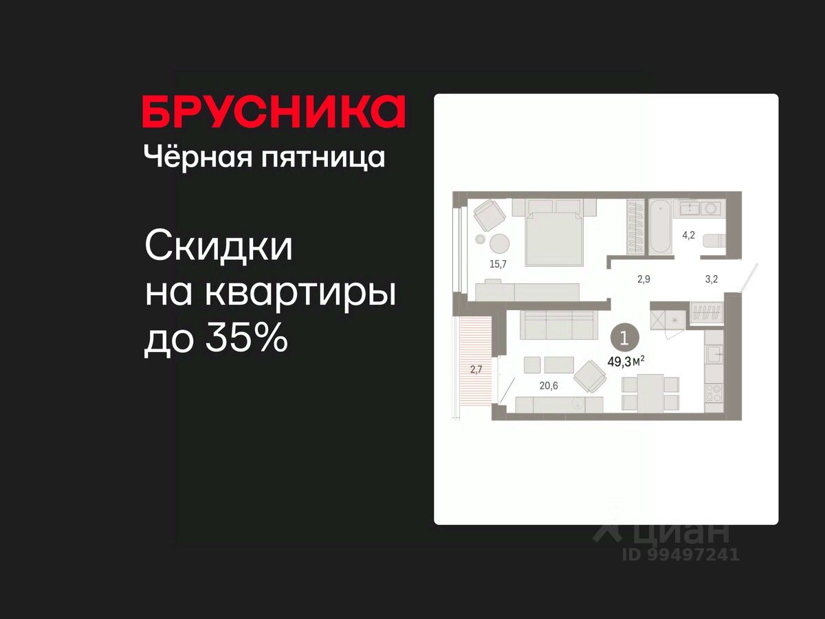 Квартира с кухней-гостиной и одной спальней в квартале "Нефть". Особенности планировки: предчистовая отделка, балкон.