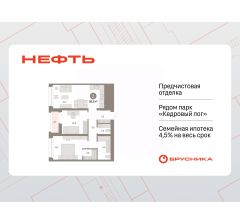 Квартира с кухней-гостиной и двумя спальнями в квартале "Нефть". Особенности планировки: второй санузел, гардеробная, окна в пол, вид во двор, лоджия, предчистовая отделка.