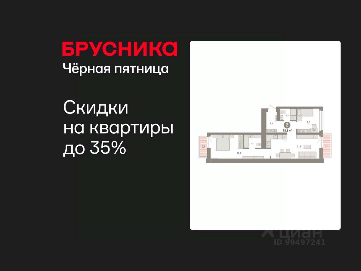 Квартира с кухней-гостиной и двумя спальнями в квартале "Нефть". Особенности планировки: окна на две стороны, гардеробная, вид во двор, разнесённые спальни, предчистовая отделка, мастер-спальня, балкон.