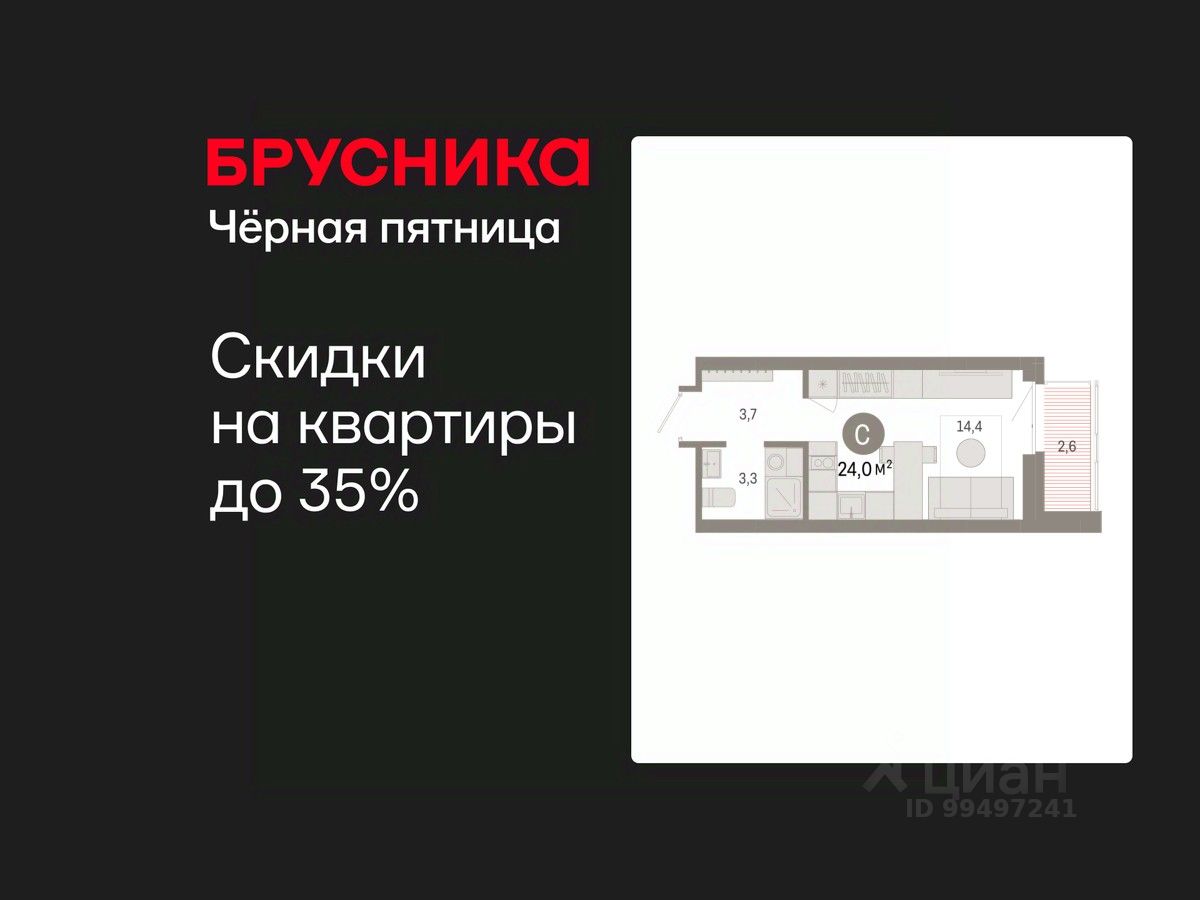 Студия в квартале "Нефть". Особенности планировки: лоджия, предчистовая отделка.