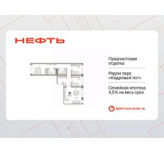 Квартира с кухней-гостиной и тремя спальнями в квартале "Нефть". Особенности планировки: окна на две стороны, гардеробная, вид во двор, разнесённые спальни, предчистовая отделка, мастер-спальня.