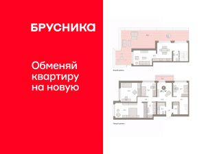 Двухуровневая квартира с кухней-гостиной и четырьмя спальнями в квартале "Нефть". Особенности планировки: балкон, двухуровневая, свободная планировка, терраса на крыше.