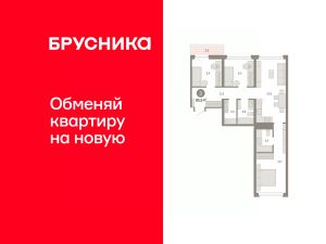 Квартира с кухней-гостиной и тремя спальнями в квартале "Нефть". Особенности планировки: балкон, вид во двор, гардеробная, мастер-спальня, окна на две стороны, постирочная, предчистовая отделка, разнесённые спальни.