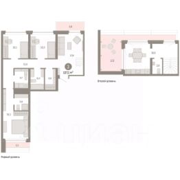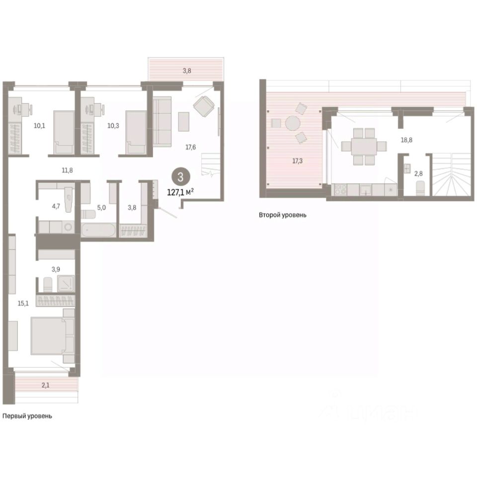 Двухуровневая квартира с кухней-гостиной и тремя спальнями в квартале "Нефть". Особенности планировки: окна на две стороны, двухуровневая, вид во двор, свободная планировка, балкон, терраса на крыше.