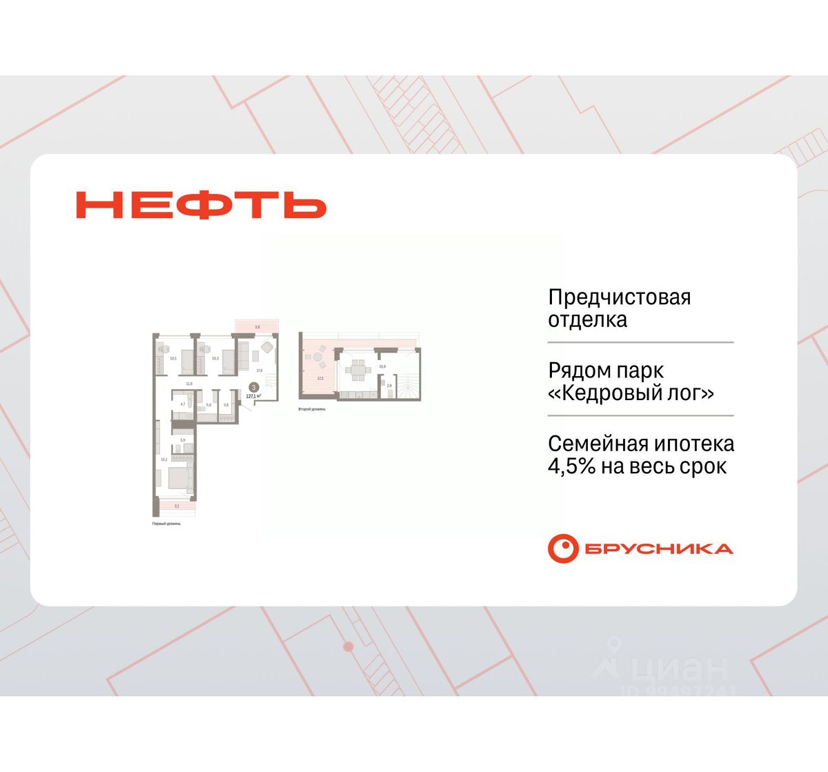 Продается трехкомнатная квартира от застройщика с предчистовой отделкой в ЖК "Нефть" на 7 этаже. Двухуровневая квартира, планировка позволяет организовать индивидуальное пространство для каждого члена семьи. Общая площадь: 127.11 кв.м., жилая: 38.2 кв.м., площадь просторной кухни-гостиной: 19.8 кв.м. Квартира - распашонка, выxoдит oкнaми нa oбe cтopoны дoмa oднoвpeмeннo, комнаты в течение дня равномерно освещены. В квартире два балкона и одна лоджия, два совмещенных и один раздельный санузел. Наличие террасы в квартире дает возможность для создания зон отдыха в кругу семьи и друзей. Высота потолков 2.7 м.