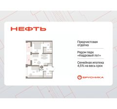 Квартира с кухней-гостиной и двумя спальнями в квартале "Нефть". Особенности планировки: гардеробная, лоджия, разнесённые спальни, предчистовая отделка, мастер-спальня.
