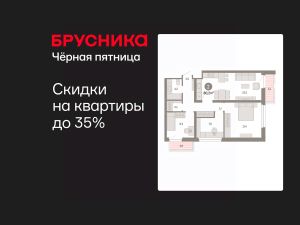 Квартира с кухней-гостиной и двумя спальнями в квартале "Нефть". Особенности планировки: гардеробная, рабочий кабинет, лоджия, разнесённые спальни, предчистовая отделка, балкон.