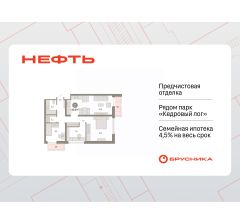 Квартира с кухней-гостиной и двумя спальнями в квартале "Нефть". Особенности планировки: предчистовая отделка, рабочий кабинет.
