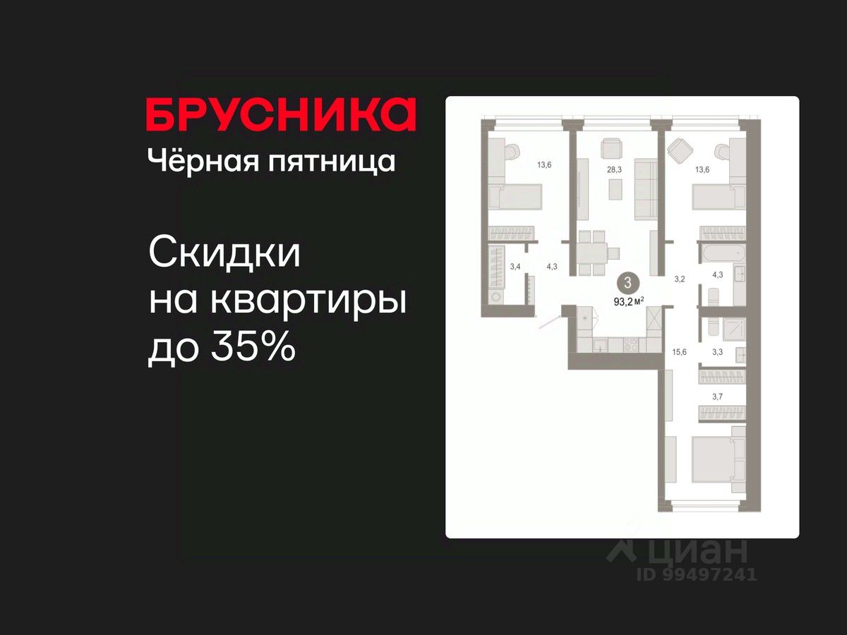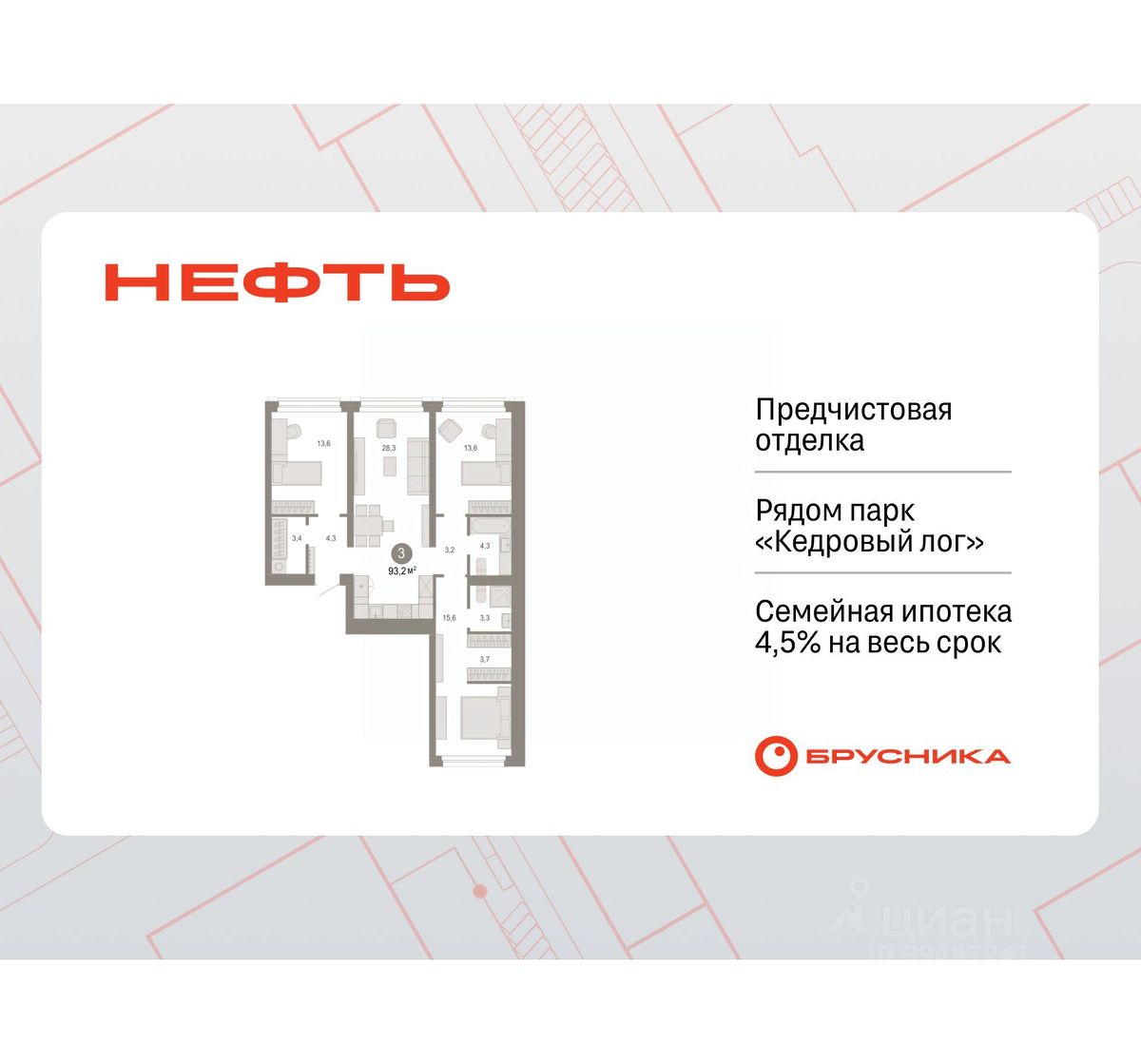 Трехкомнатная квартира от застройщика с предчистовой отделкой в ЖК "Нефть" на 2 этаже. Общая площадь: 93.2 кв.м., жилая: 42.8 кв.м., площадь просторной кухни-гостиной: 28.3 кв.м. Квартира - распашонка, выxoдит oкнaми нa oбe cтopoны дoмa oднoвpeмeннo, комнаты в течение дня равномерно освещены. В квартире два совмещенных санузла. Высота потолков 2.7 м.