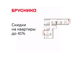 Квартира с кухней-гостиной и тремя спальнями в квартале "Нефть". Особенности планировки: мастер-спальня, окна на две стороны, предчистовая отделка.