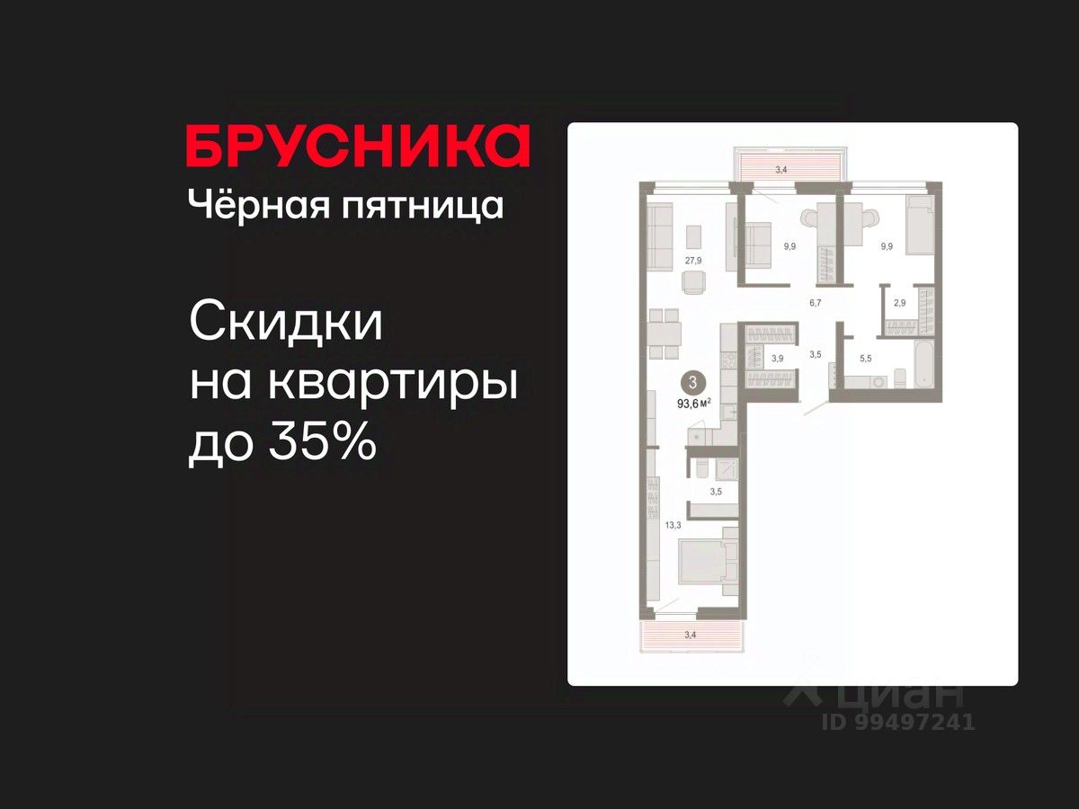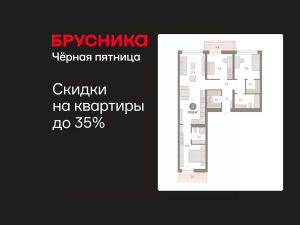 Квартира с кухней-гостиной и тремя спальнями в квартале "Нефть". Особенности планировки: окна на две стороны, гардеробная, вид во двор, разнесённые спальни, предчистовая отделка, мастер-спальня, балкон.